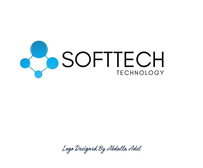 The SoftTech logo combines modern typography with a tech-inspired symbol to represent innovation and digital solutions. The design communicates efficiency, connectivity, and a forward-looking technology brand.